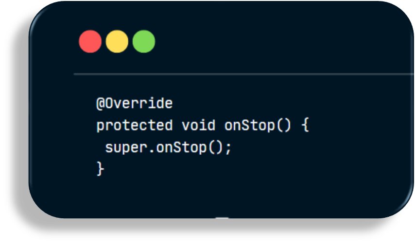 - It also provides a set of pre-defined methods, which are triggered at different app states, and are overridden to perform anything as desired.