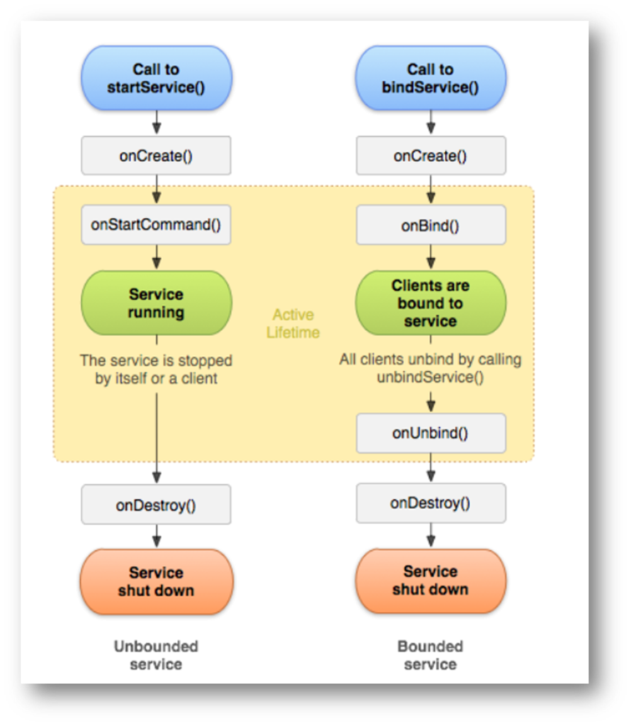 A started service is one that another component starts by calling startService(), which results in a call to the service’s onStartCommand() method.