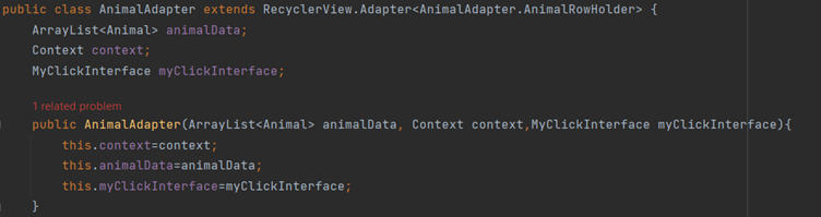 public AnimalAdapter(ArrayList<Animal> animalData, Context context,MyClickInterface myClickInterface){