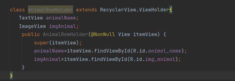 inner class AnimalRowHolder(itemView: View) : RecyclerView.ViewHolder(itemView) {