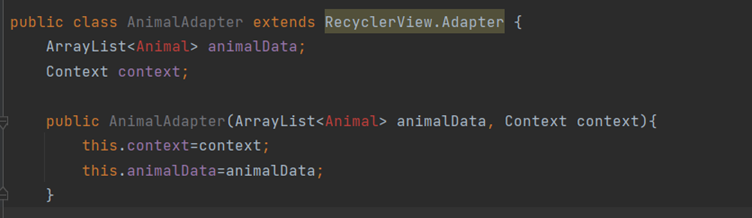 Create constructor for AnimalAdapter & pass ArrayList object & Context.