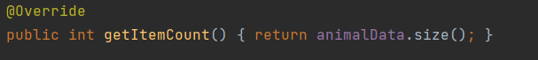 public int getItemCount() { return animalData.size(); }