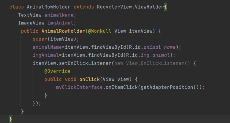 Inner classs AnimalRowHolder