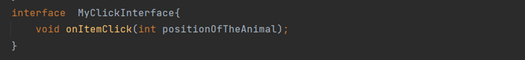 Create interface MyClickInterface inside Animal Adapter.