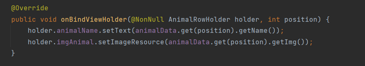 public void onBindViewHolder(@NonNull AnimalRowHolder holder, int position) {