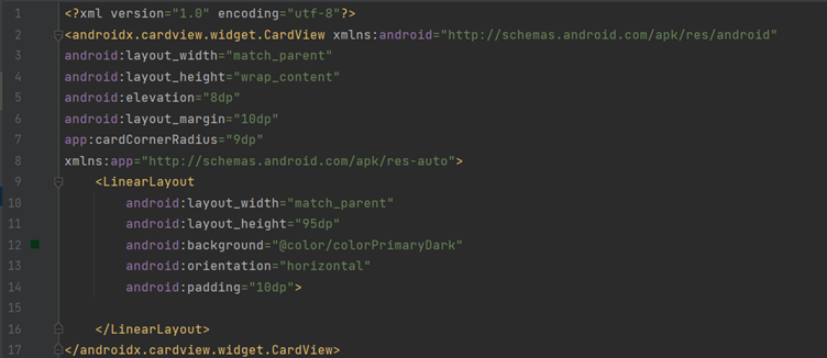 android:elevation=”5dp” attribute is used for shadow effect on image.app:cardCornerRadius=”9dp” is used for rounded corner .