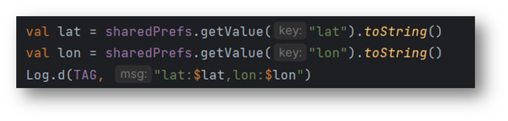 Log.d(TAG, "latitude:$latitude,longitude:$longitude")