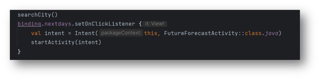 Call searchCity() function will come to this in a few minutes and handle click on Next5days text.