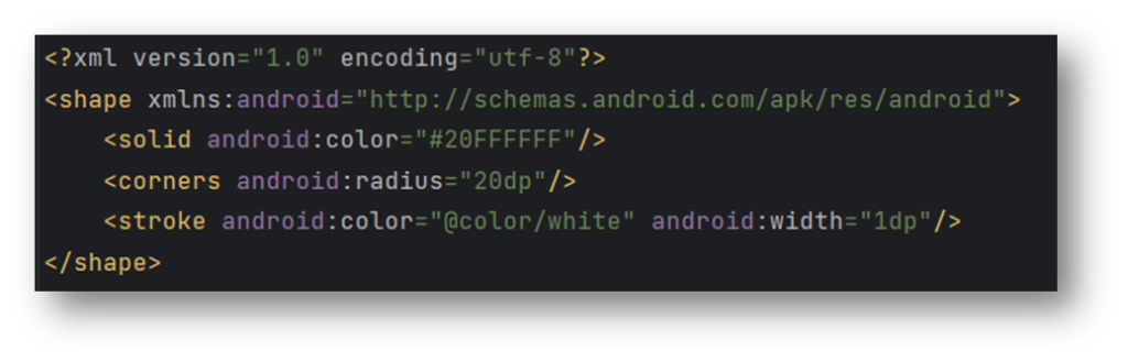 Select the root layout as a shape while creating the file or change the root layout in XML and set the solid, stroke, and corners elements.